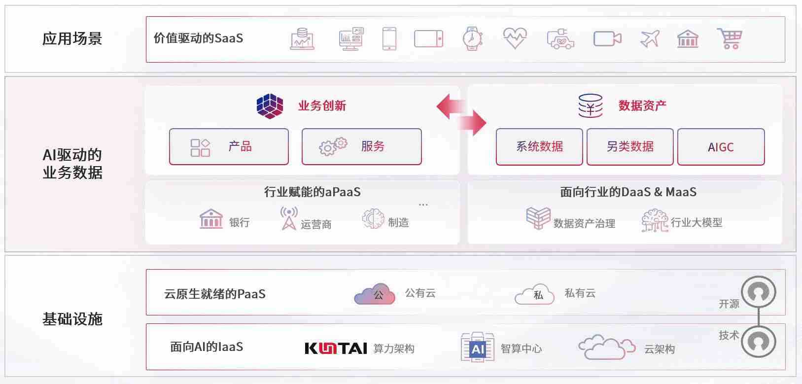 数字时代,,,,围绕企业数字化转型的关键要素,,Z6尊龙数码开创性的提出数云融合战略和技术体系框架,,着力在云原生、、、、数字原生、、AI原生和信创产业上架构产品和服务能力,,,,为处在不同数字化转型阶段的快消零售、、汽车、、金融、、、、医疗、、、政企、、、、教育、、、、运营商等行业客户提供泛在的敏捷IT能力和融合的数据驱动能力,,,构建跨界融合创新的数字业务场景和新业务模式,,,助力企业级客户建立面向未来的核心能力和竞争优势,,全面推动社会的数字化、、、、智能化转型升级。。。。
